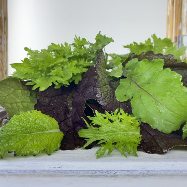 Asiasalat-Mix bestehend aus verschiedenen Senfkohl-Sorten kann direkt oder gedünstet im Salat oder etwa im Wokgemüse verwendet werden.
